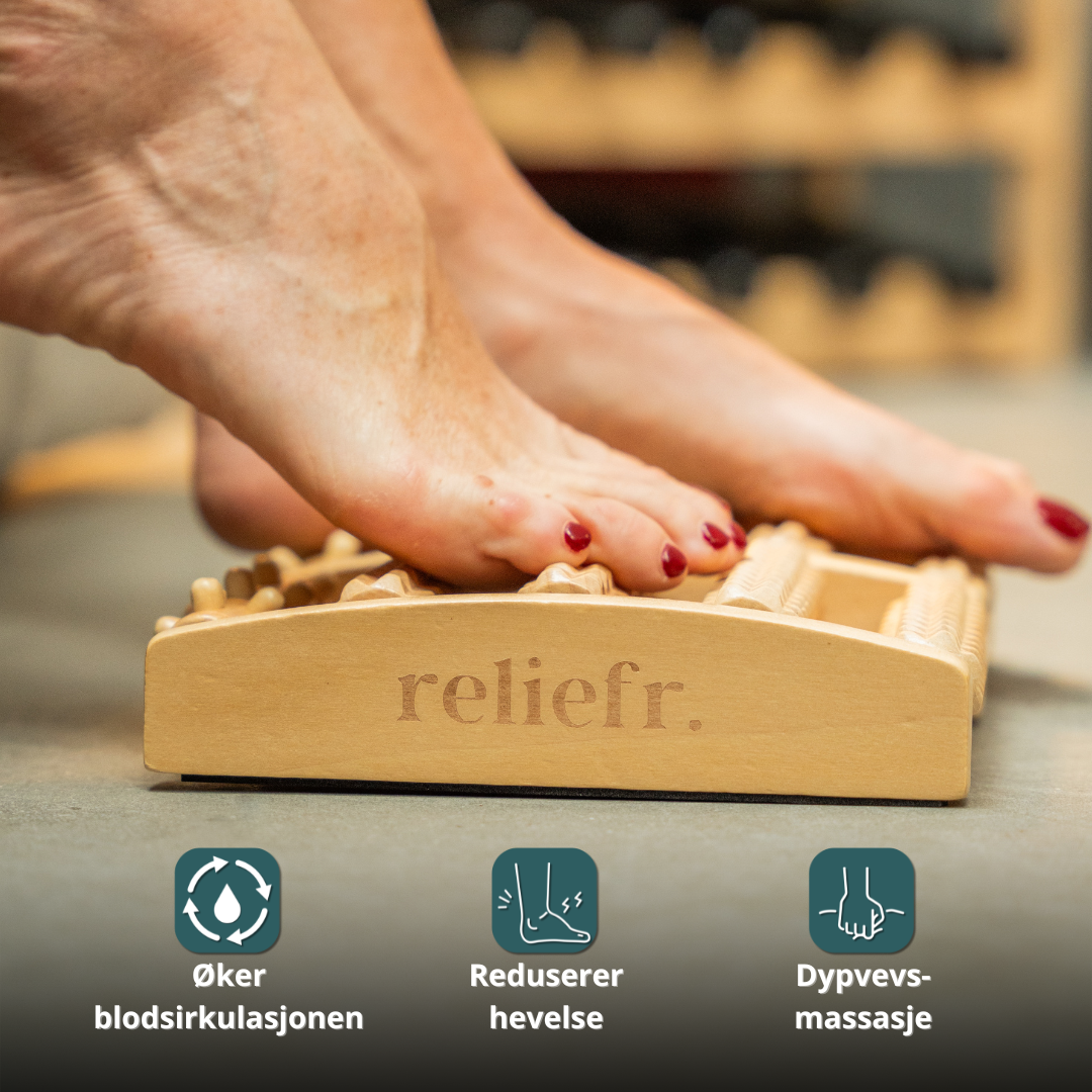 Opplev en lindrende fotmassasje med vÄr populÊre Reliefr fotmassasjerulle. Kompakt og bÊrbar, perfekt for bruk hjemme eller pÄ farten.